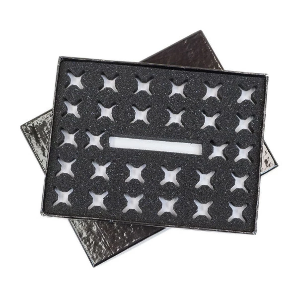 Don’t throw all your valuable tools in a box! Put them in a box! This box is made for them, that is! Designed for 2-D, 3-D, and alphabet stamps. Holds up to 26 stamps and a handle. Stamps and handle not included.