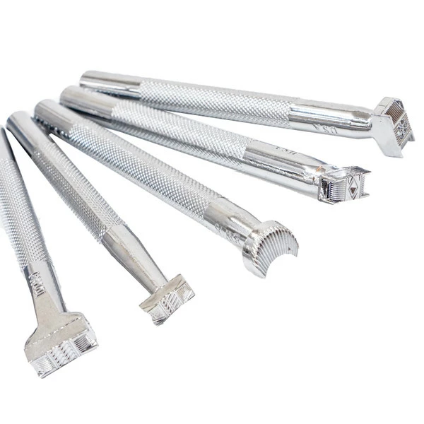 This 5 piece stamping tool set comes with four basketweave stamping tools and one camouflage tool for making awesome patterns. A must have for your stamping tool collection!