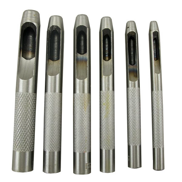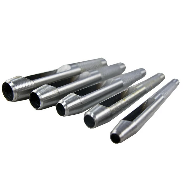 6pc Hollow round punch set includes: 1/8″, 5/32″, 3/16″, 15/64″, 1/4″, 5/16″.