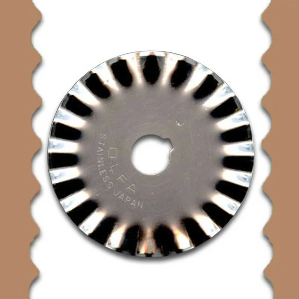 These 45 mm Olfa Rotary Blades are great for adding some decorative style to your edges! They fit both the Deluxe and Regular Olfa Rotary Cutters listed on this page. Item #401-9451.