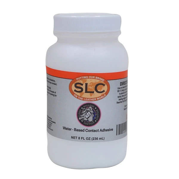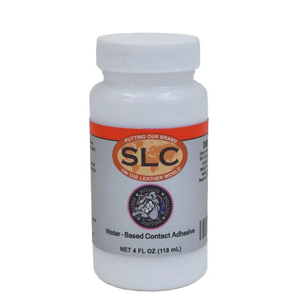 Bulldog All-Purpose Cement is a very high-tech combining cement. Made in the U.S.A. by one of this country’s foremost adhesive manufacturers! It’s designed for use in applications where you’re adhering similar materials, or adhering different materials to one another; like leather to leather, or leather to wood. Anywhere great strength and a permanent bond is required. This is a FANTASTIC alternative to Leatherweld! It’s water based, and also dries clear and flexible. Just don’t plan on taking something apart once this cement has been used properly and allowed to dry completely, because THAT ain’t gonna happen!