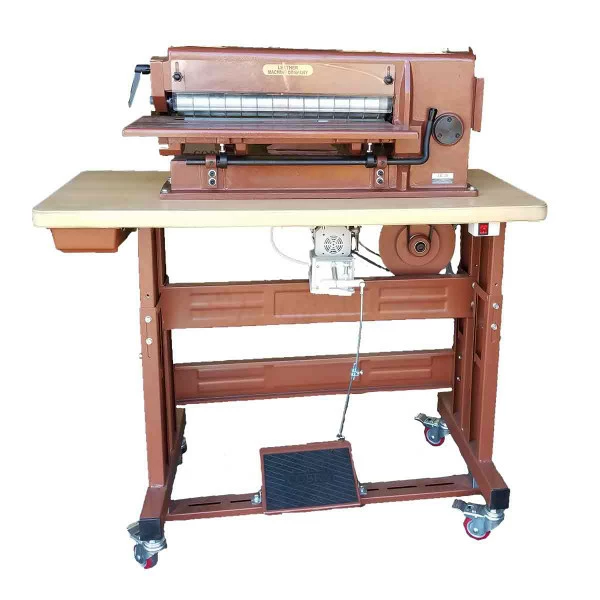 Quickly and easily cuts multiple belts or straps from a single piece of leather! Equipped with a 1/2 hp. (0.4 KW) Inductor motor and SR2 speed reducer, and features multiple size spacers, eight adjustable cutting blades, and tabletop work space.