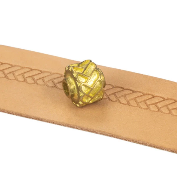 To Use: Mount the wheel into Embossing Carriage and secure into place. Then itโs simply a matter of rolling the wheel over your dampened veg. tanned leather. The more pressure you put on the carriage, the deeper and darker the impression. For a stronger and more durable impression, rock the wheel back and forth on the leather as you move along.