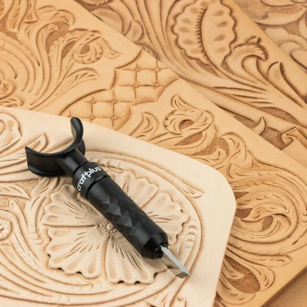 Handle limitless leather carving with precision and accuracy. Lightweight body makes it easy to maneuver every curve, and glides through leather like butter. Adjustable yoke allows for easy height adjustment to fit all hand sizes! Knurled diamond housing features an innovative twist lock, that twists to loosen and tighten the blade. No Allen Wrench needed! This swivel knife comes with a dual-sided, stainless-steel angle/straight blade, giving you an extra edge in one knife.