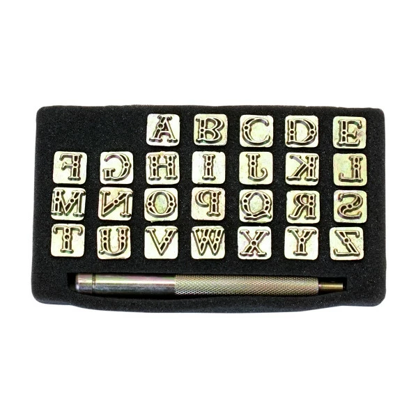26 piece Fancy Craftmaster Alphabet Stamp Set. Includes stamp handle and storage box. Available inย 3 sizes – 1/2″, 3/8″, 3/4″ and 1/4″.