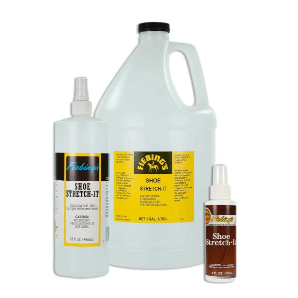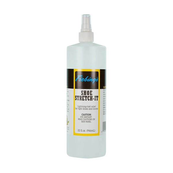 This easy to use, alcohol-based leather conditioner works to stretch shoes in those tight spots where they grab the most. Fiebingโs Shoe Stretch-It actually expands the treated areas of the shoe without weakening the leather. This product will not harm skin, socks, or stockings, so itโs completely safe to apply it while youโre still wearing your shoes! Perfect for use on all leather, suede and nubuck shoes and boots. ORMD. Flammable.