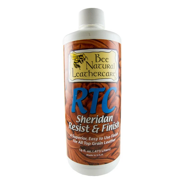 Sheridan Resist & Finish is a superior, easy to use finish for all top grain leather. RTC gives superior resistance and top gloss for maximum contrast when antiquing or staining leather. This is a safe non-toxic, non-hazardous, odor-free, gloss finish that doesnt peel or crack. It can be used over antiques, dyes and acrylics and allows you to oil over it so the leather still breaths. This one product can be used as both a resist and top coat when antiquing leather.