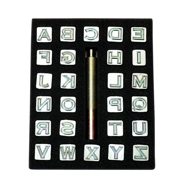 26 piece Open Face Craftmaster Alphabet Stamp Set. Includes stamp handle and storage box. Available inย 3 sizes – 1/2″, 3/8″, 3/4″ and 1/4″.