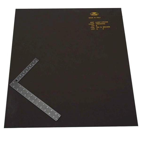 Made from sound absorbent rubber. Firm rubber shoe sole material, great for moc soles, perfect for setting crystal rivets, makes a great backing for a slab of marble or granite. Will double as a cutting surface if you donโt have any poly material. Not really suitable for punching holes though. Colors will vary, and are not guaranteed. Tread on one side and smooth on the other.