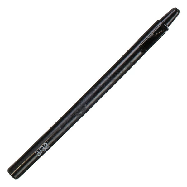 These have a slick Black finish. Best drive punch on the block…at least on our block! These solid one-piece tools, are drop-forged from tool steel, and the sweet thing about them, is that they automatically clean your punched leather out the side of the barrel so there’s never any clogging…I mean who needs a clogged barrel anyway? Round Drive Punch 3/32″ Item #330-1211