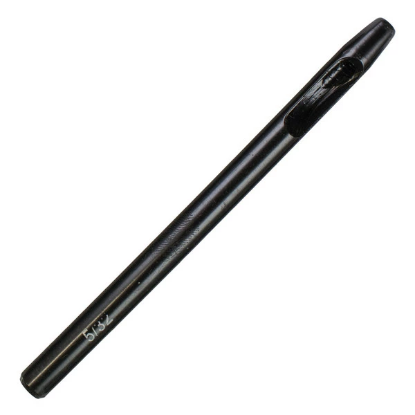 These have a slick Black finish. Best drive punch on the block…at least on our block! These solid one-piece tools, are drop-forged from tool steel, and the sweet thing about them, is that they automatically clean your punched leather out the side of the barrel so there’s never any clogging…I mean who needs a clogged barrel anyway? Round Drive Punch 5/32″ Item #330-1213