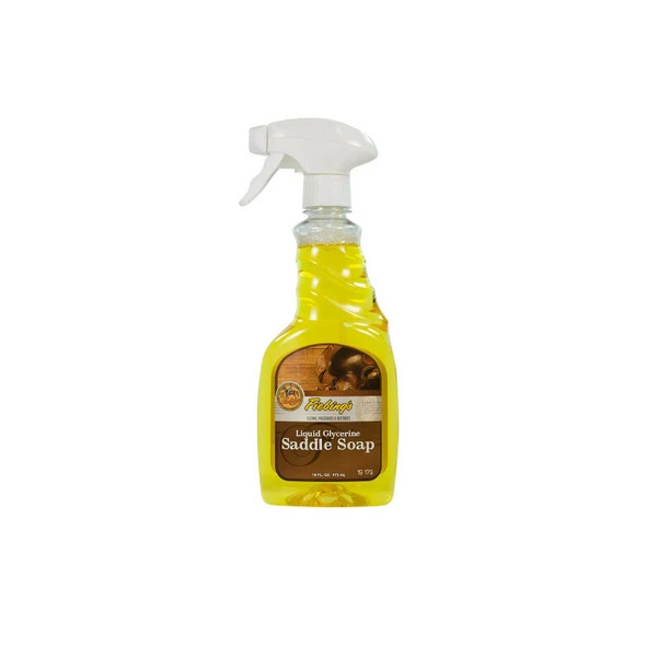 Specially formulated liquid glycerine saddle soap will clean and preserve saddlery and all smooth leather articles. Easy to use; save time and effort by using this convenient spray saddle soap. Buffs to a rich, satin finish. 16 oz. Spray. Item #34-230200.