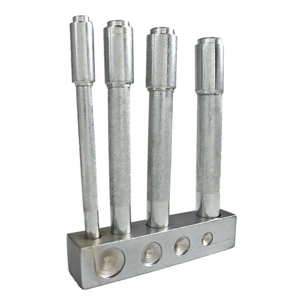 Round Spot Setter Set: Five piece set provides you with all you need to expertly set 1/4″, 3/8″, 7/16″ and 1/2″ #1330 round spots.