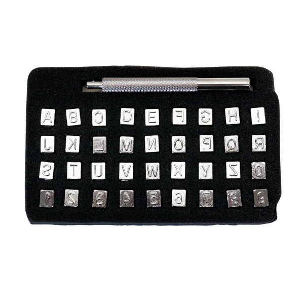 Nice combination set that includes 36 stamp heads and a handle. 1/4″. Item #28-813700.