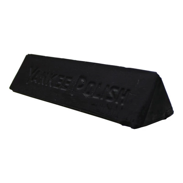 Triangular bar of black polishing wax. For best results use with felt or leather buffer of edge-iron. 4-1/2 to 5 oz average weight.